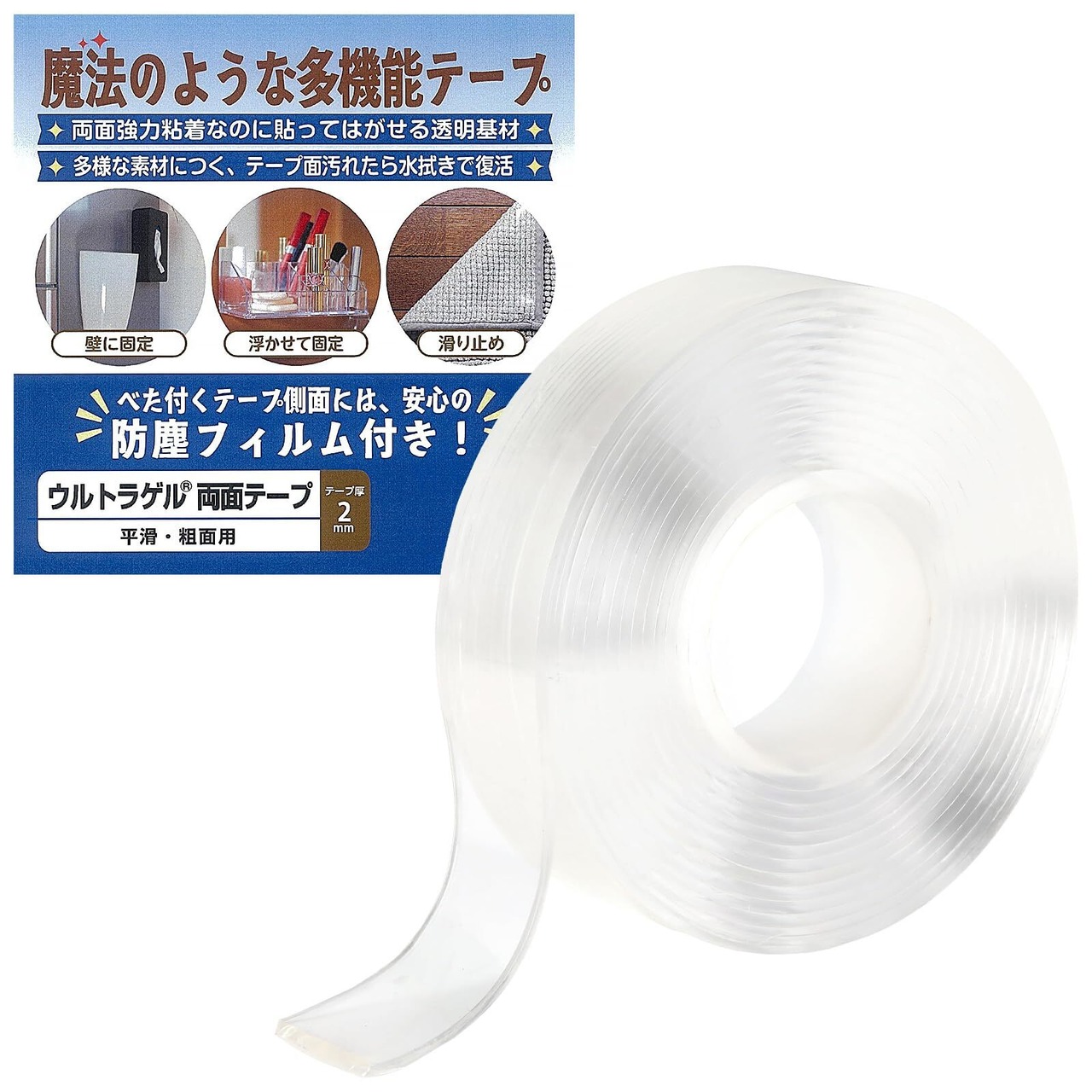 両面テープ 超強力 ウルトラゲル 厚さ2mm×幅15mm×長さ3m 【防塵フィルム付きで快適!】 超強力両面テープ はがせる 滑り止め 耐熱 防水 プランドゥーアイ